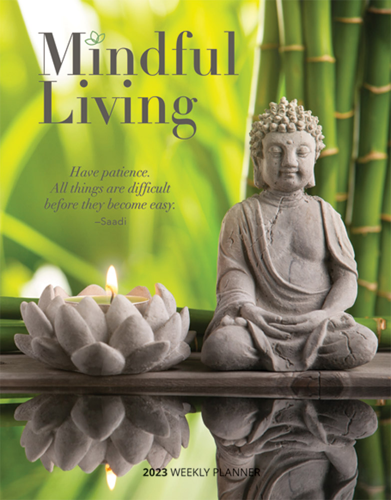 Mindful Living 2023 Weekly Desk Planner Front Cover – Brush Dance All Rights Reserved