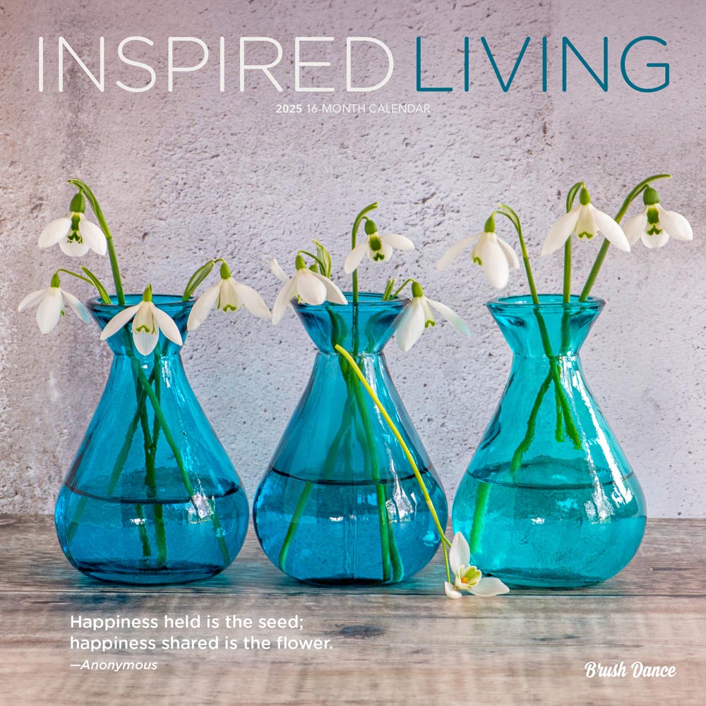 Inspired Living | 2025 12 x 24 Inch Monthly Square Wall Calendar | Plastic-Free | Brush Dance | Photography Quotes Inspiration